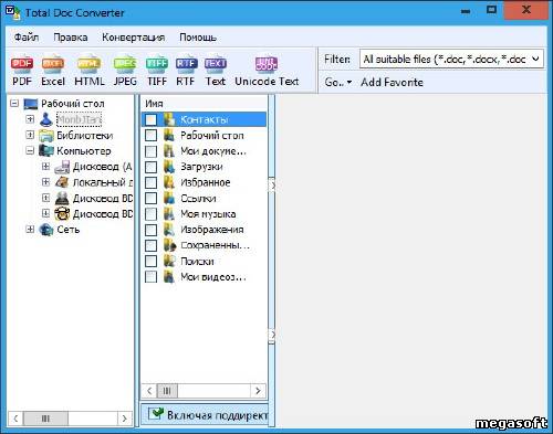 Total Doc Converter решает проблему конвертирования Doc файлов в PDF, HTML, XLS, JPG, TIFF или Text. Total DOC Конвертер умеет приводить все DOC файлы к единому форматированию. Если у вас 1000 doc файлов и у всех разное форматирование, просто задайте нужные настройки в Total DOC Converter. Программа обработает все файлы автоматически, и на выходе Вы получите документы с одинаковым форматированием. Total DOC Конвертер была разработана для удобства и экономии времени пользователя. Прозрачный интерфейс позволяет даже новичку с легкостью разобраться с принципами функционирования утилиты. Вам даже не придется запускать программу. Вы можете конвертировать Word файл